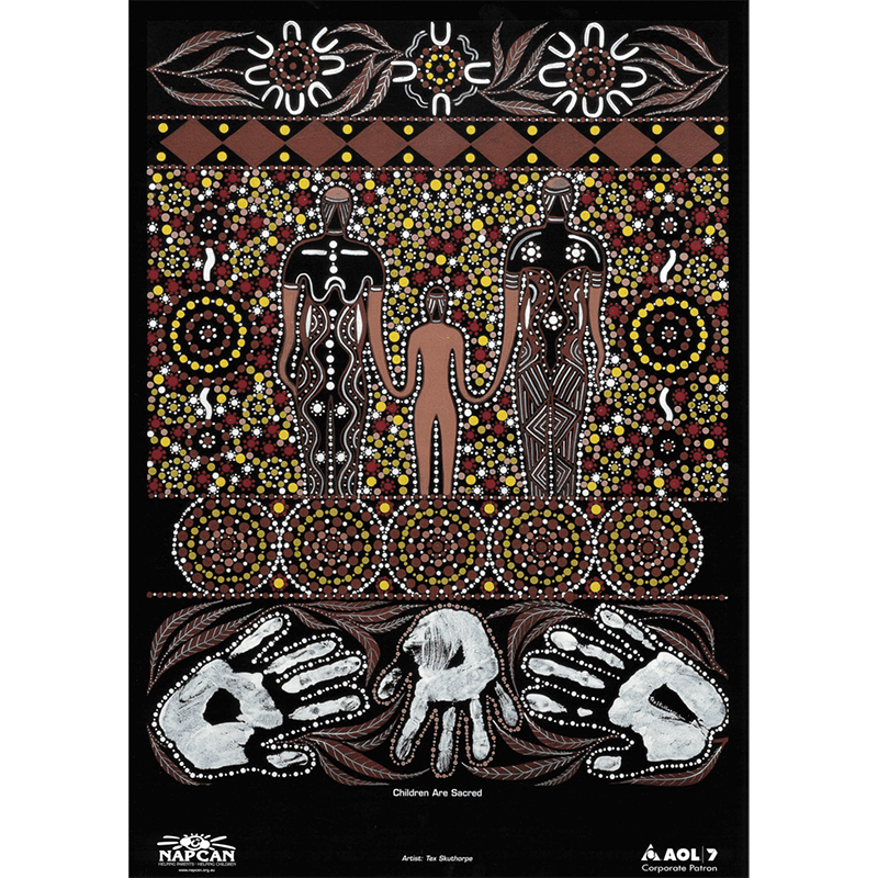 Original poster design by First Nations artist Tex Skuthorpe. This poster also includes the Story from his country, Noonghaburra in north western NSW.