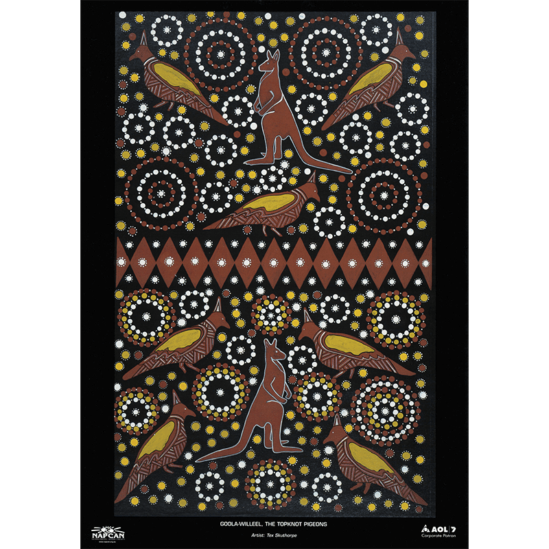Original poster design by First Nations artist Tex Skuthorpe. This poster also includes the Story from his country, Noonghaburra in north western NSW.