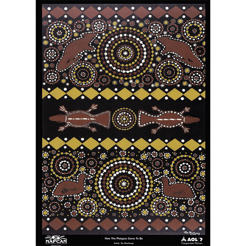 Original poster design by First Nations artist Tex Skuthorpe. This poster also includes the Story from his country, Noonghaburra in north western NSW.